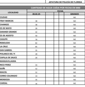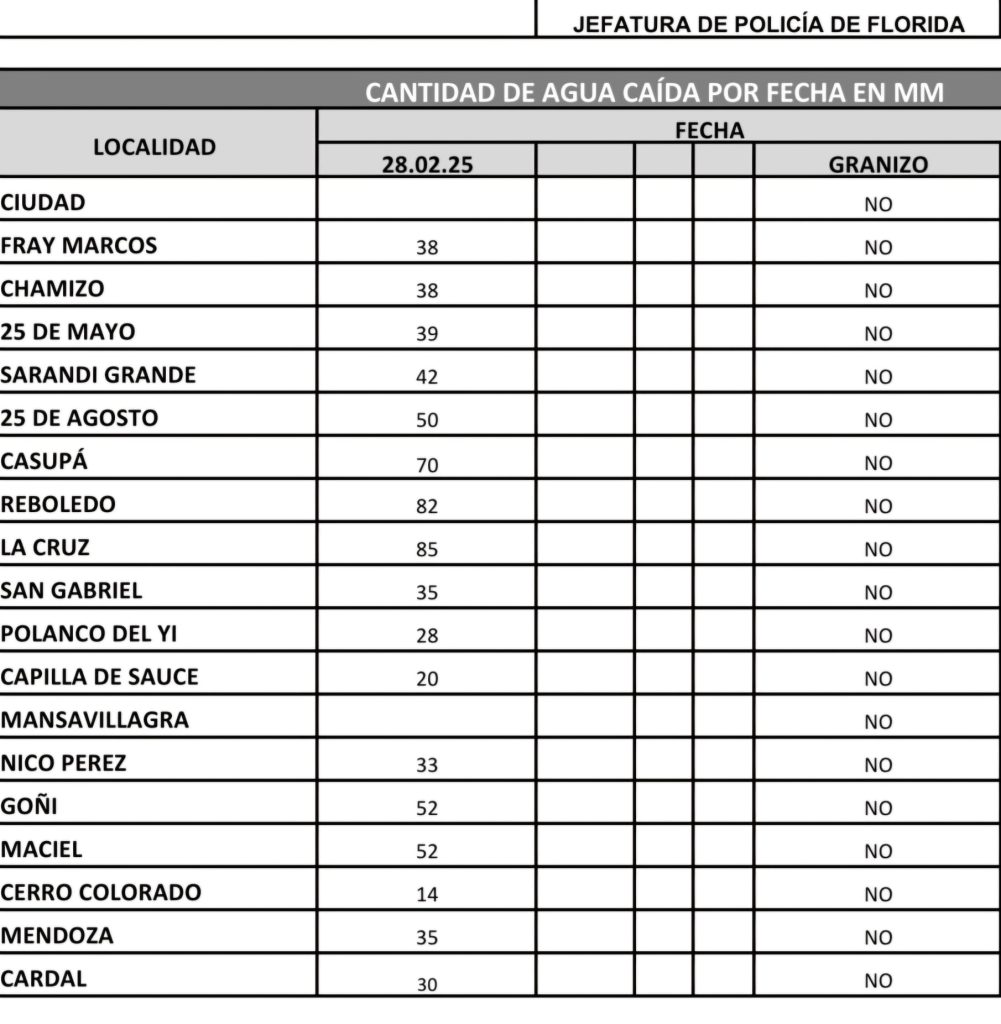 Referente a la ciudad de Florida el registro es de 45mm.