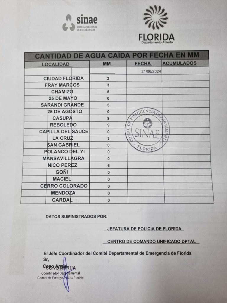 CASUPA Y REBOLEDO HASTA EL MOMENTO TIENEN EL MAYOR REGISTRO CON 9mm. Como pronosticó el Instituto Uruguayo de Meteorología, comenzaron las lluvias hoy viernes y ya hay algunas localidades que registraron agua caída.El informe oficial es una gentileza de Luis Martinez del INUMET.