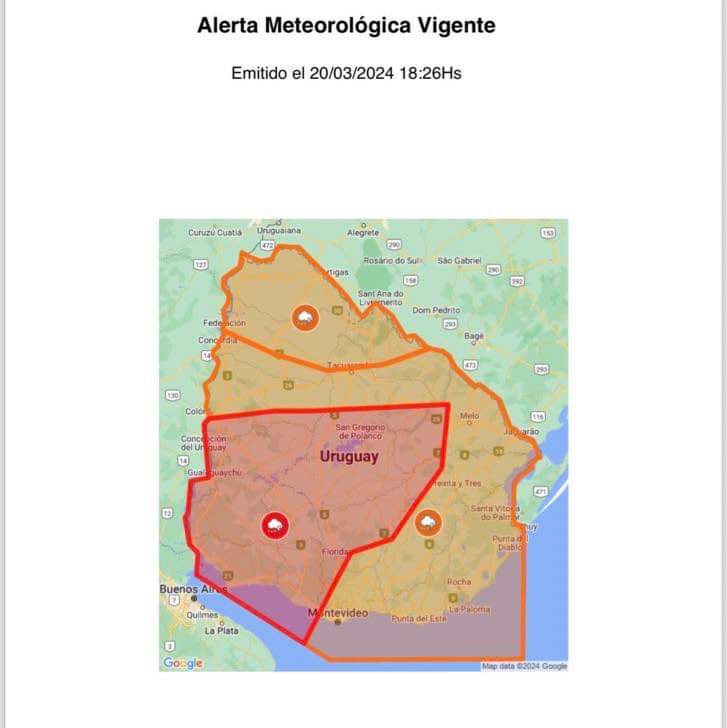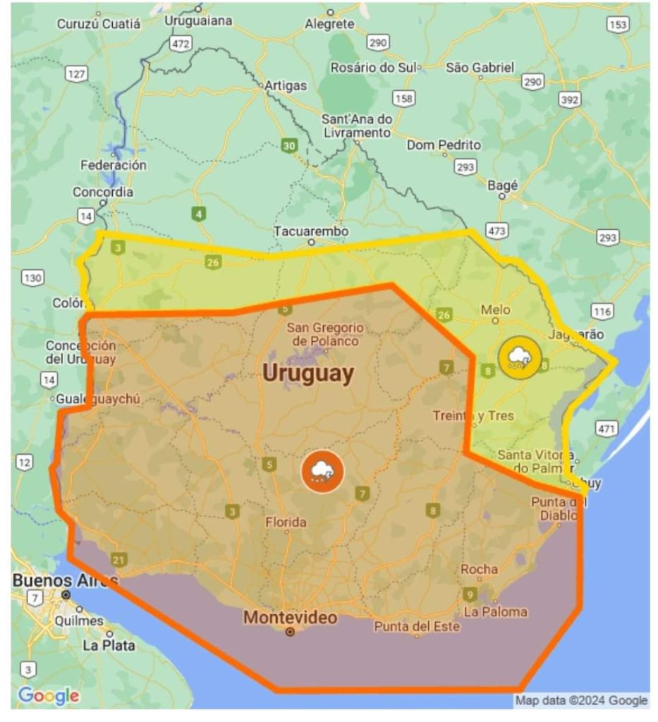 INUMET MANTIENE ALERTA NARANJA PARA GRAN PARTE DEL PAÍS