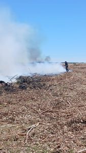 Según pudimos saber en el lugar existe maquinaria pesada realizando tareas ya que están trabajando campos explotados por Montes del Plata, y hay muchas ramas secas, las cuales fácilmente tomaron fuego.